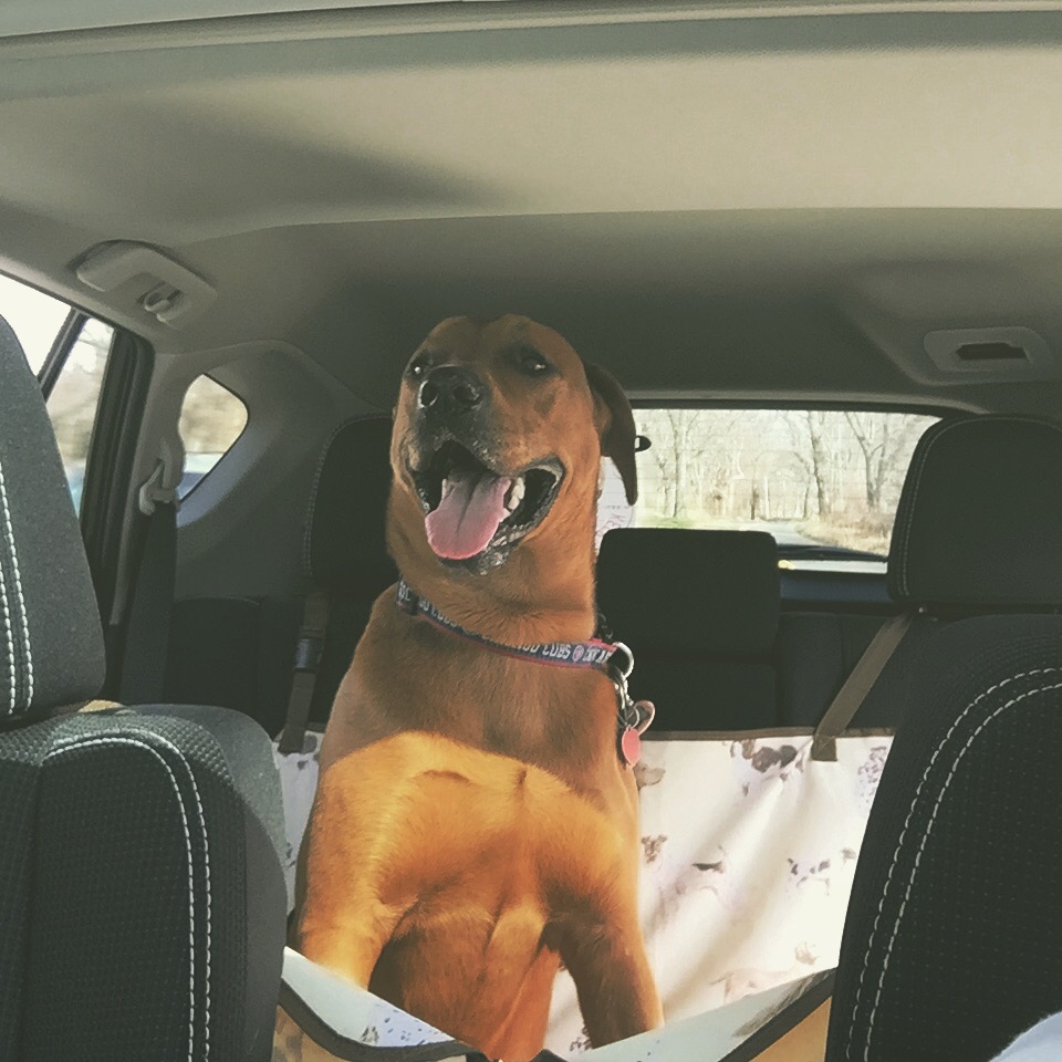 Back seat chillin April 11, 2017 We have our strong handsome pup riding in the back with us. Look at those muscles and that smile! Share: Click to share on X (Opens in new window) X Click to share on Facebook (Opens in new window) Facebook Like Loading...